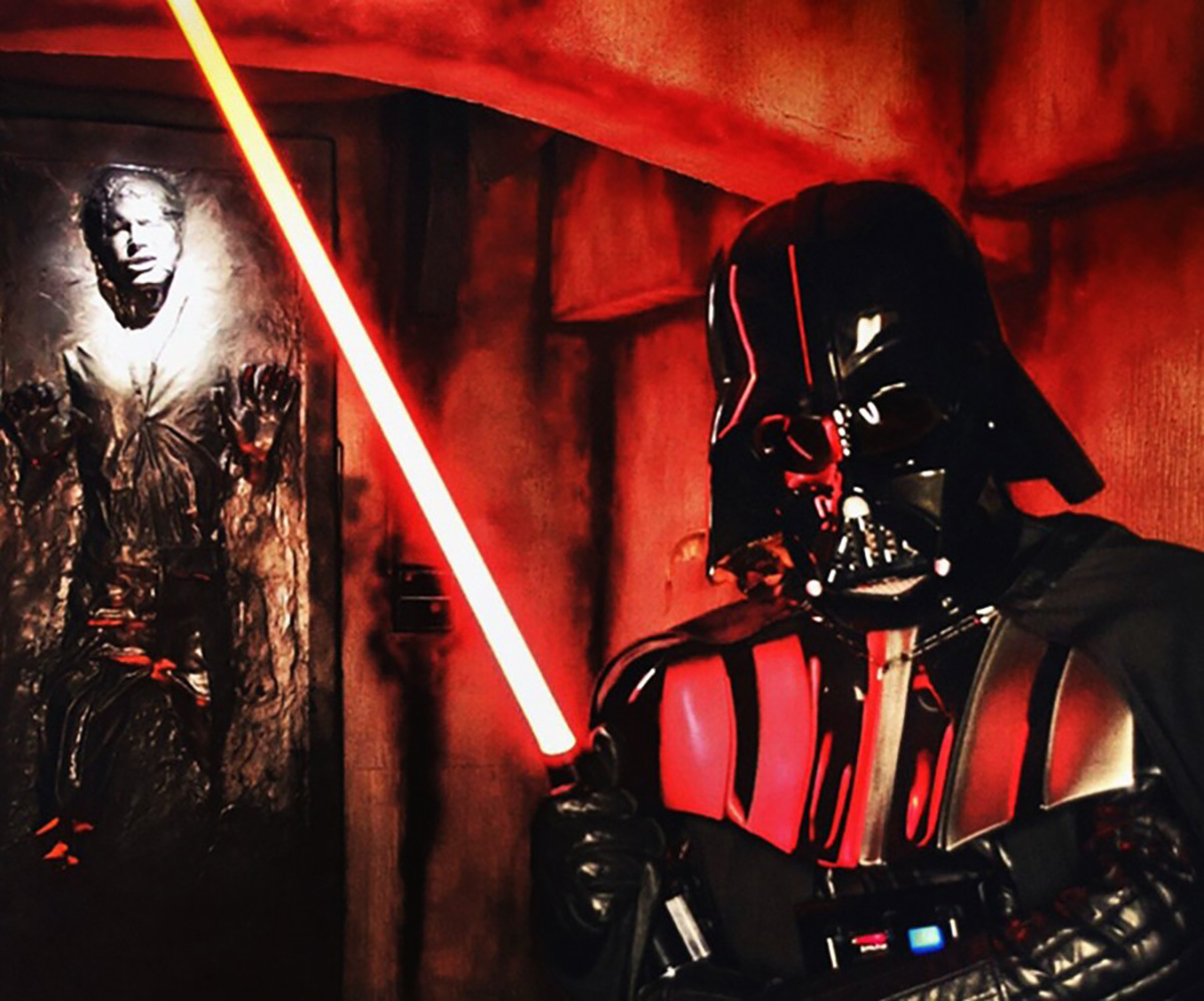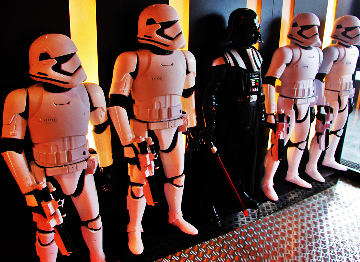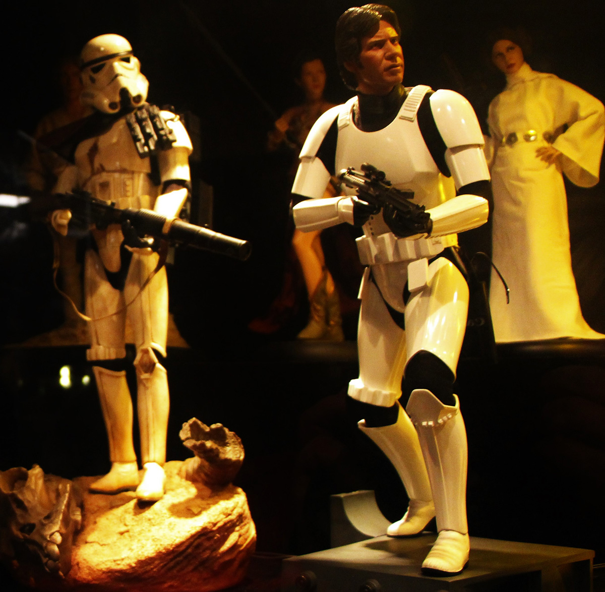 In der Ausstellung schauten wir uns lebensgroße Film.- und Sammler-Figuren, Original-Requisiten, seltene Exponate, Poster, Bekleidung bzw. Kostüme und Accessoires, Laserschwert- und Waffenrepliken aus den Star Wars-Filmen und vieles mehr, an.