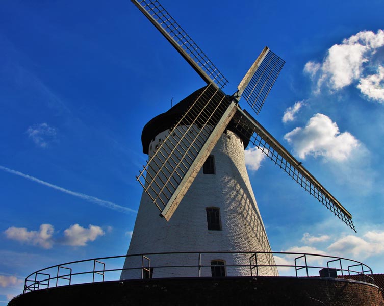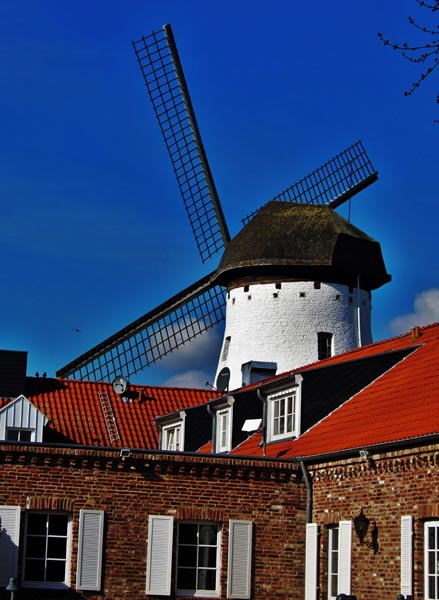 Bei der Mühle, die die größte im Krefelder Stadtgebiet ist, handelt es sich um eine Turmwindmühle, welche auf einem aus Backstein gemauerten Sockelring steht. Zur Mühle gehören ein eingeschossiges Wohnhaus und Wirtschaftsgebäude. Die Fassade der Mühle ist derb verputzt (geschlämmt) und weiß getüncht.