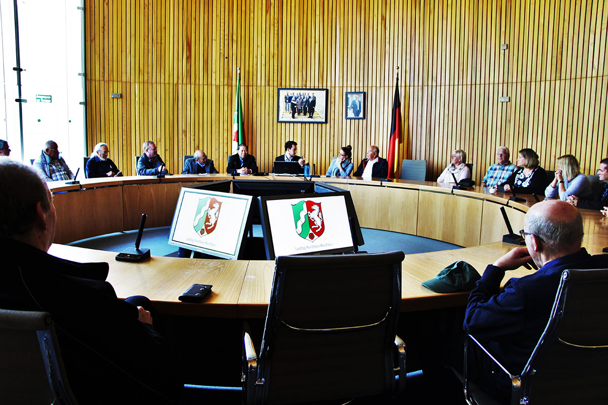 Ein Highlight war, als Gäste auf der Tribüne an einer Plenarsitzung und in einem Sitzungsraum an ein Dialogaustausch mit Hans-Willi Körfges, MdL, SPD teilzunehmen.