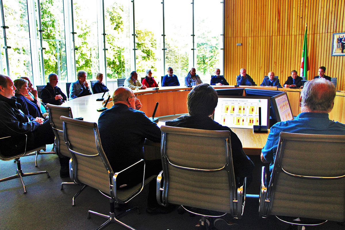 Nach einem gemeinsamen Frühstück im Landtag NRW, haben wir in einem Sitzungssaal Informationen von einem Mitarbeiter des Landtags über die Vorbereitung der Plenarsitzungen erhalten.
