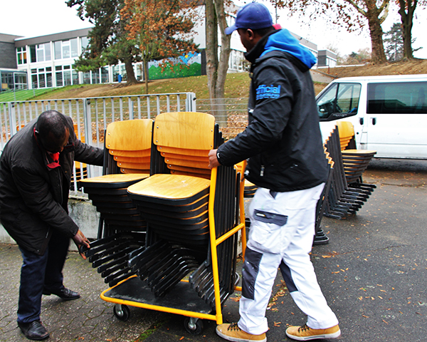 Am Samstag wurden die Möbel aus der Realschule Plus in einen Lkw eingeladen und Richtung Mönchengladbach gefahren.