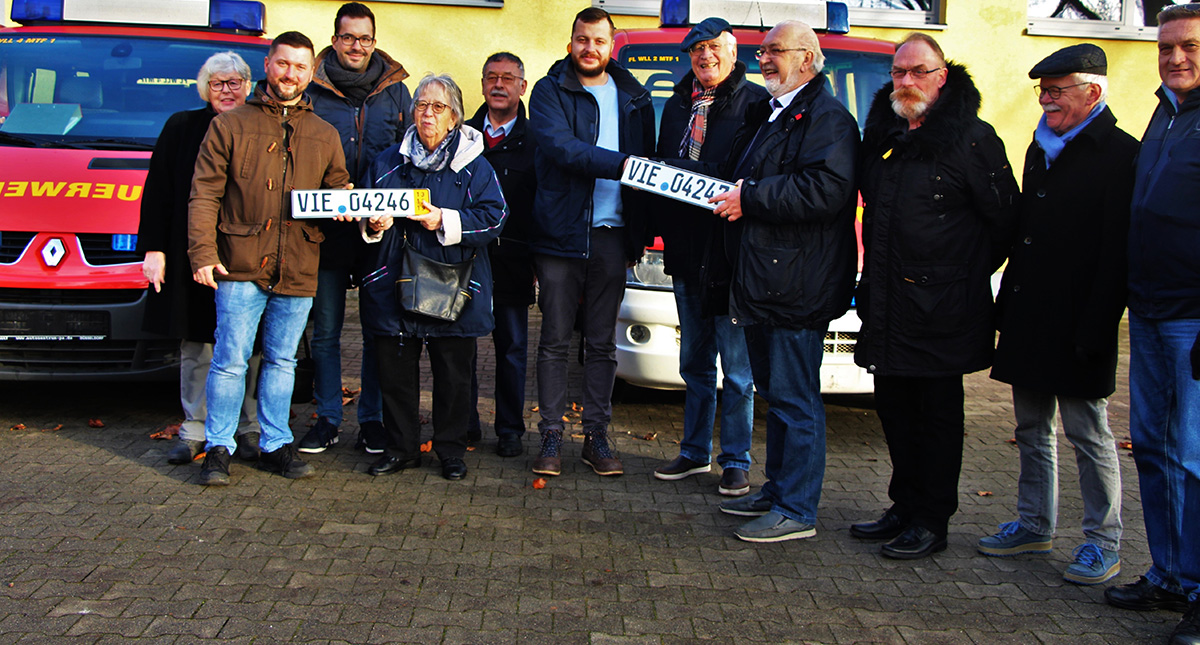 Vertreter der Stadt, Sascha Döhmen, Andreas Winkler und aus der Politik, Dietmar Winkels, Bürgermeister-Kandidat der Stadt Willich, SPD waren bei der Übergabe der Mannschaftstransportwagen dabei.