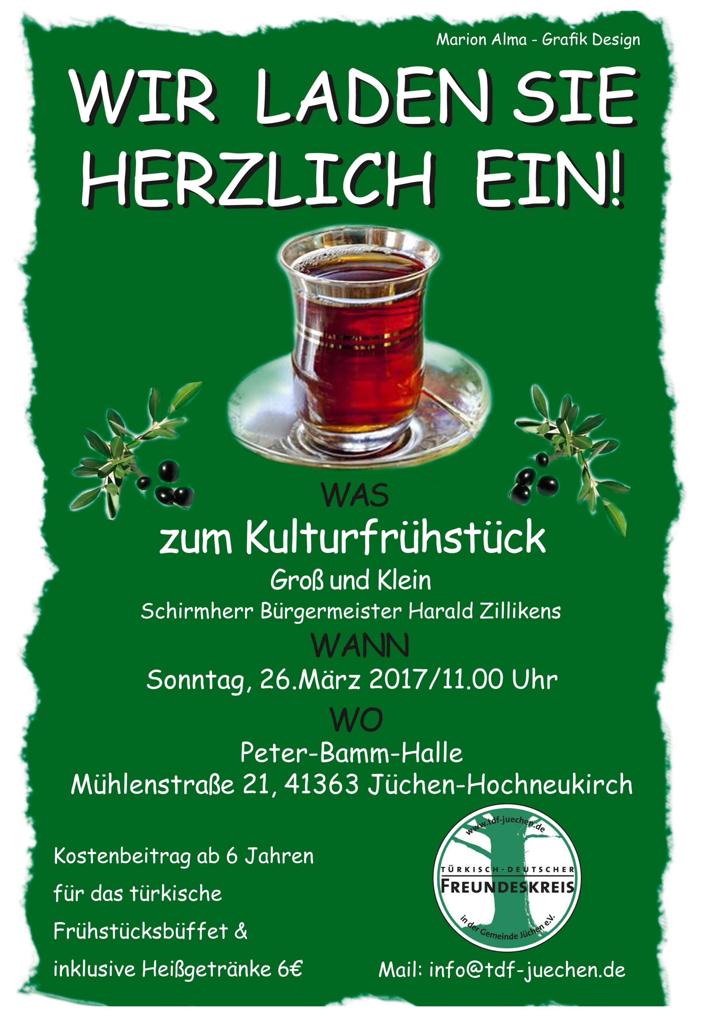 Einladung zum Kulturfrühstück in Jüchen mit Serin Alma, Türk.-Deutscher Freundeskreis Jüchen e. V. und Harald Zillikens, Bürgermeister Peter-Bamm-Halle, Mühlenstr. 21, 41363 Jüchen-Hochneukirch