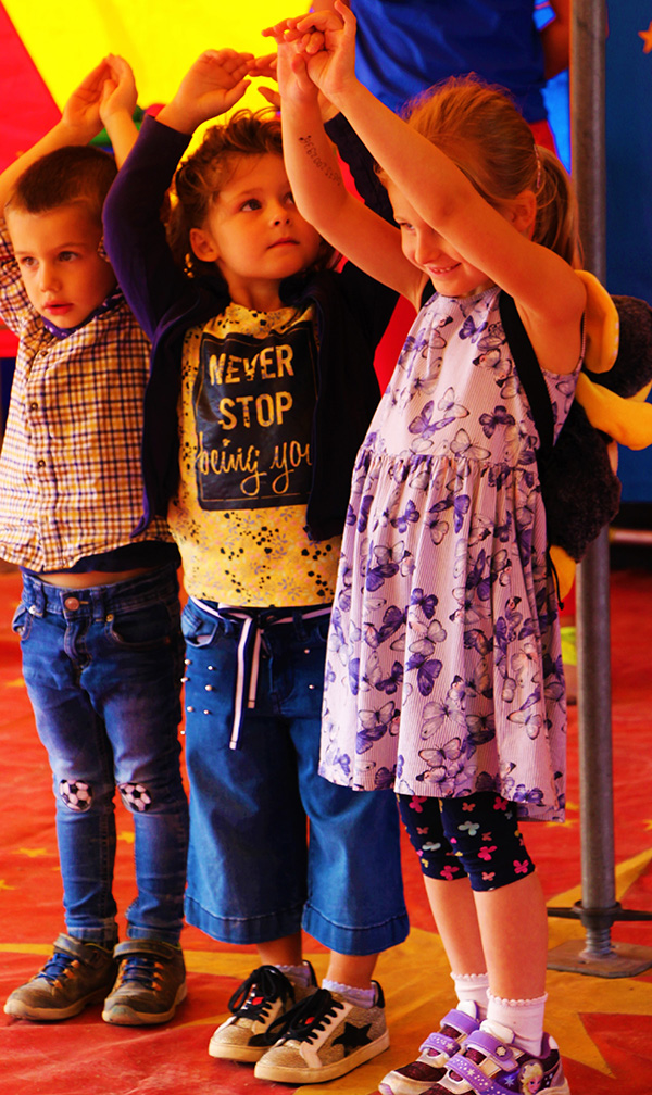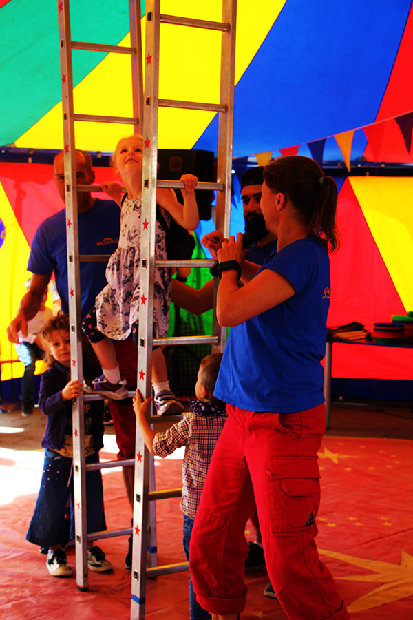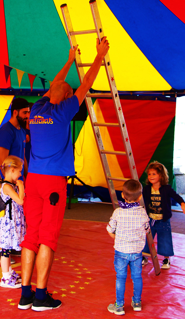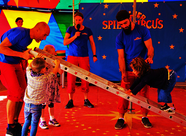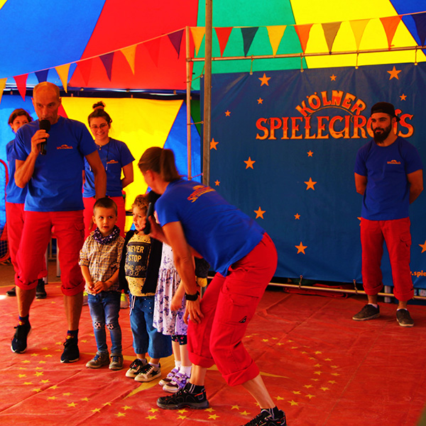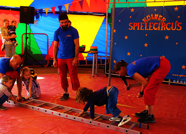 Besuch im Kinderzirkus an der Rheinuferpromenade, in Düsseldorf, freier Eintritt