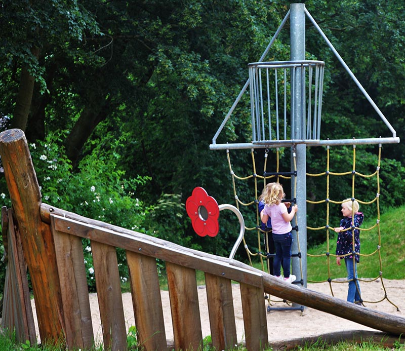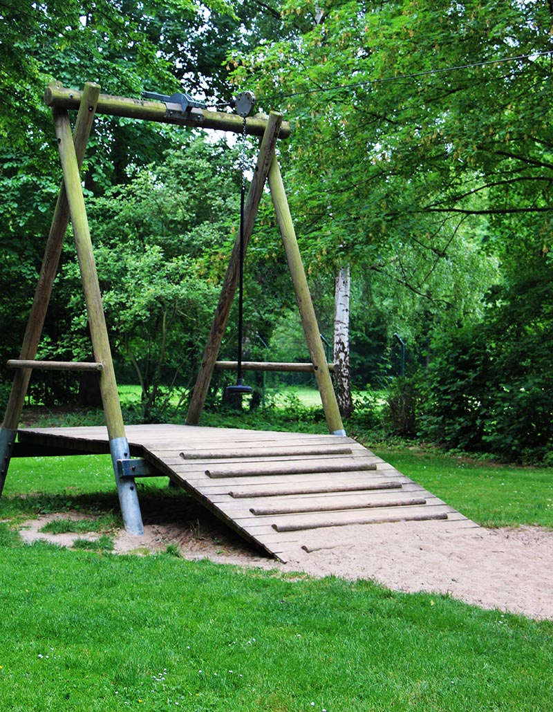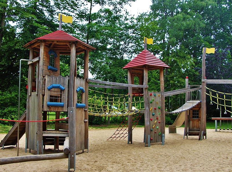 Weitläufiger Spielplatz mit vielen Möglichkeiten für Kleine und Große.