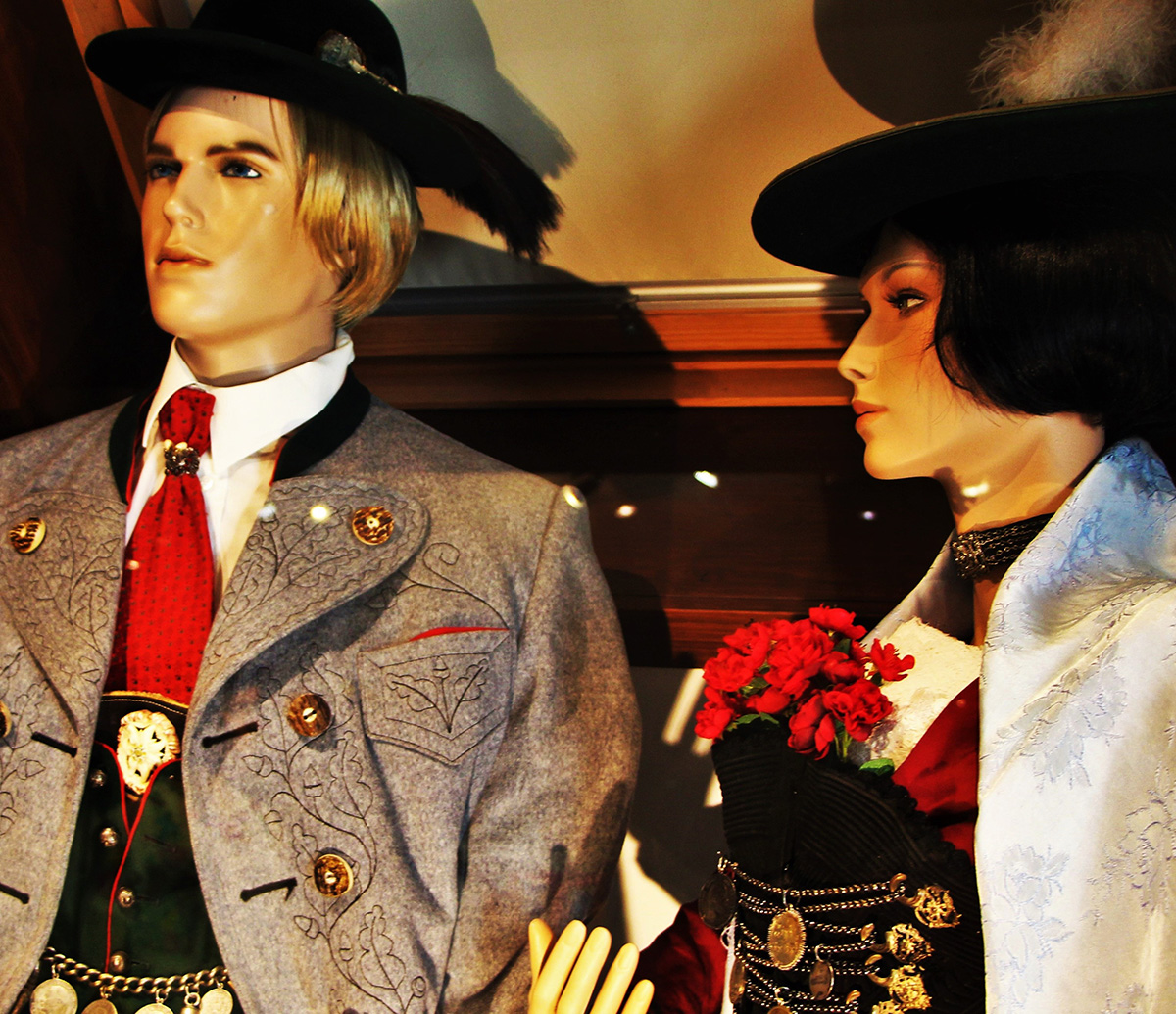 Für den Mann gab es geschmeidige Lederhosen in kurz, mittel oder lang, rustikale Haferlschuh und das traditionelle Trachtenhemd.