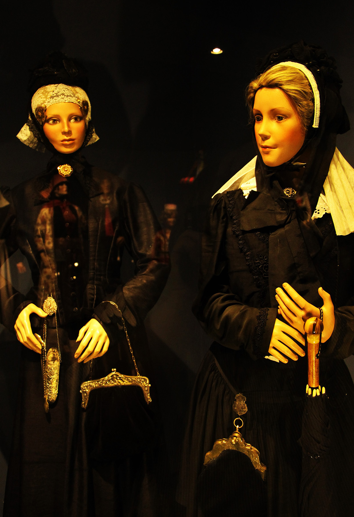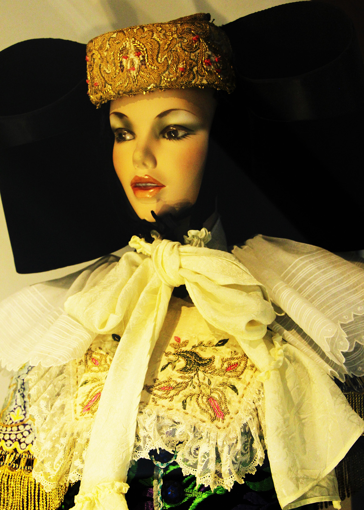 Neben der höchsten Festtrachten, der Marienbild- und auch Werktags-Trachten, wurden Accessoires wie Perlhandschuhe, Gebetbücher, bestickte Schuhe, Haar- bzw. Kopfschmuck und Strümpfe mit aufwändigen Strickmustern genau so präsentiert, wie hochwertige Stoffe aus Kaschmir, Schultertücher und prächtige Oberteile aus Samt und Seide.