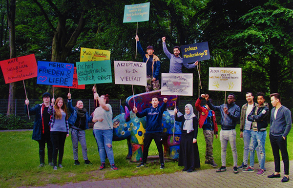 Beteiligte aus Kita-Gruppen, Schulklassen, Integrationszentren, Vereinen und Seniorentreffs haben Inhalte der Erklärung genauer unter die Lupe genommen einzelne Artikel fotografisch umgesetzt. Die Ausstellung zeigt die entstandenen Arbeiten, gesammelte Perspektiven und persönliche Erfahrungen mit Recht und Würde. Sie lädt Besucher/-innen ein sich auch selbst spielerisch mit den Menschenrechten auseinanderzusetzen.
