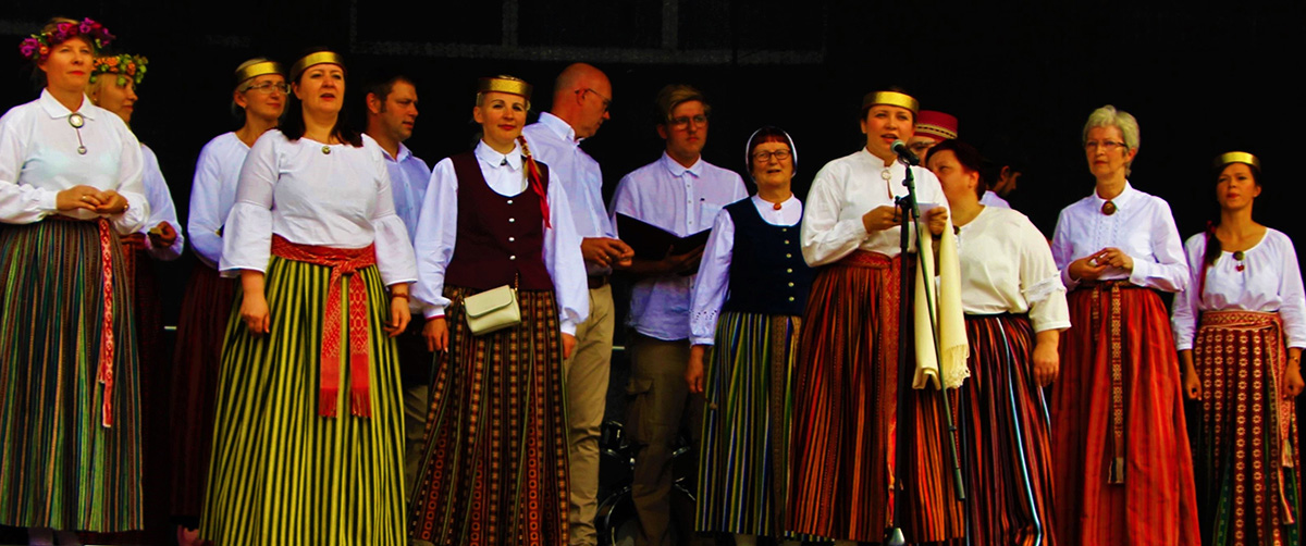 Ein lettischer Nachmittag mit bildlicher Erzählung und Lieder über die Herkunft der lettischen Volkslieder. „Viele Lieder handeln von der Natur, von Hochzeiten und anderen Festen“.