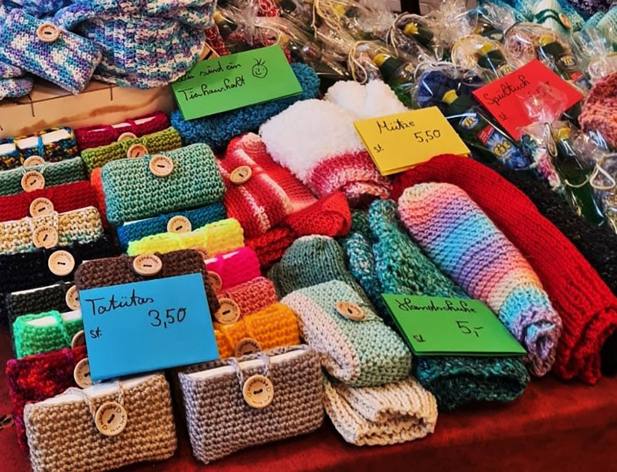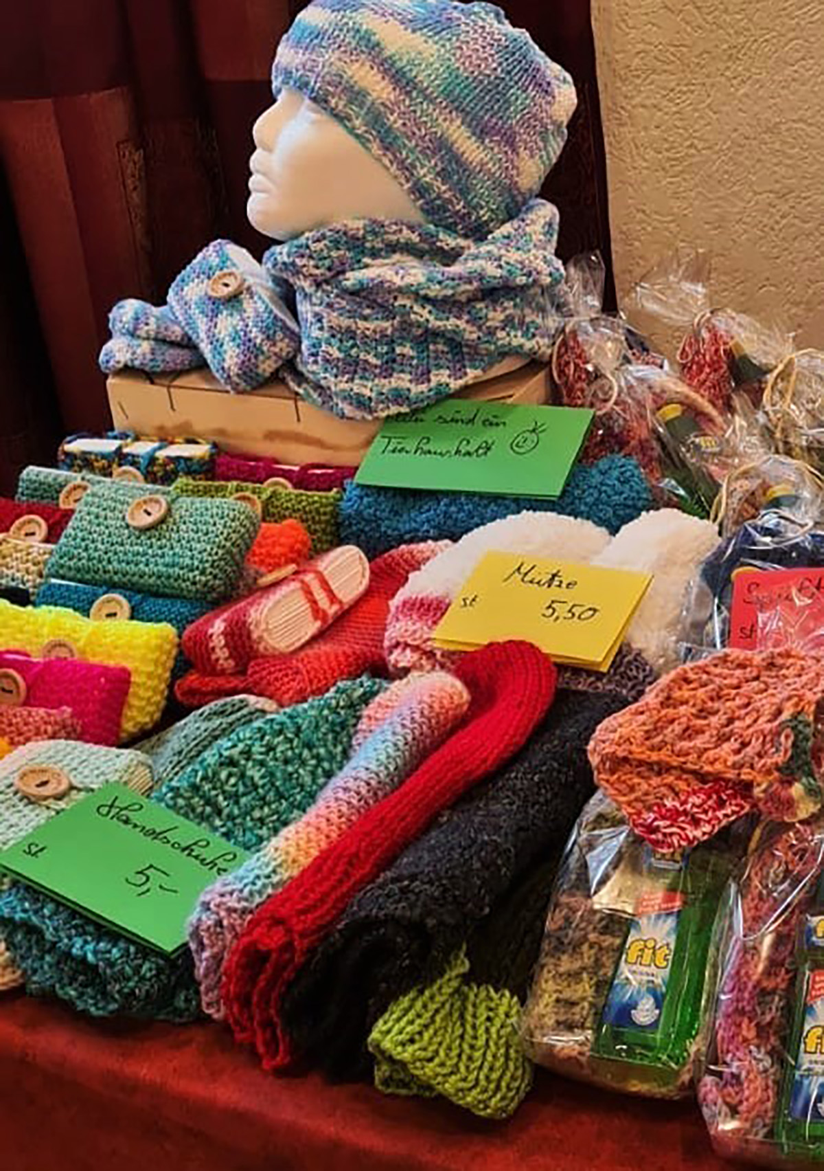 Kreativität und handwerkliches Können zeichneten die Aussteller/-innen aus und präsentierten uns die Vielfalt des Kunsthandwerkes. So fand man Schönes und Nützliches aus Glas, Holz, Glas, Keramik, Metall, Papier, Stein, Stoff, Ton, Wolle und vielen anderen Materialien. Wir konnten diese Unikate bewundern und natürlich auch käuflich erwerben.