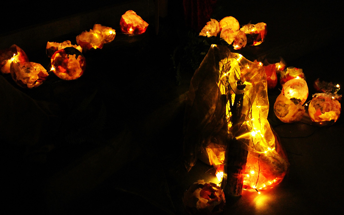 Die Laternen der Kinder bzw. Schüler* innen wurden mit Lämpchen an Lichterketten liebevoll eingebettet. Dadurch verbreitete sich ein geheimnisvoller Eindruck.