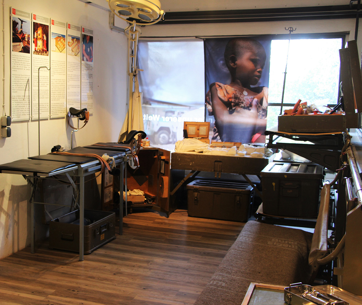 Auf 600 m² Nutz- und 550 m² Ausstellungsfläche über zwei Etagen und im Nebengebäude wird ein Einblick über die weltweite humanitäre Hilfe des Roten Kreuzes gegeben.