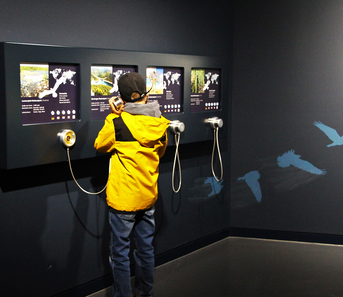 Die spannende Reise auf den Spuren der biologischen Vielfalt führte uns von der Eifel bis zu fernen Kontinenten. Die Nationalpark-Philosophie „Natur sein lassen" ist Kernbotschaft und Roter Faden der Ausstellung. Beginnend mit einem Streifzug „Von der Krone bis zur Wurzel“ eines Buchenwaldes konnten wir uns die Wasserwelten und verschiedenen Tiere der Eifel ansehen.