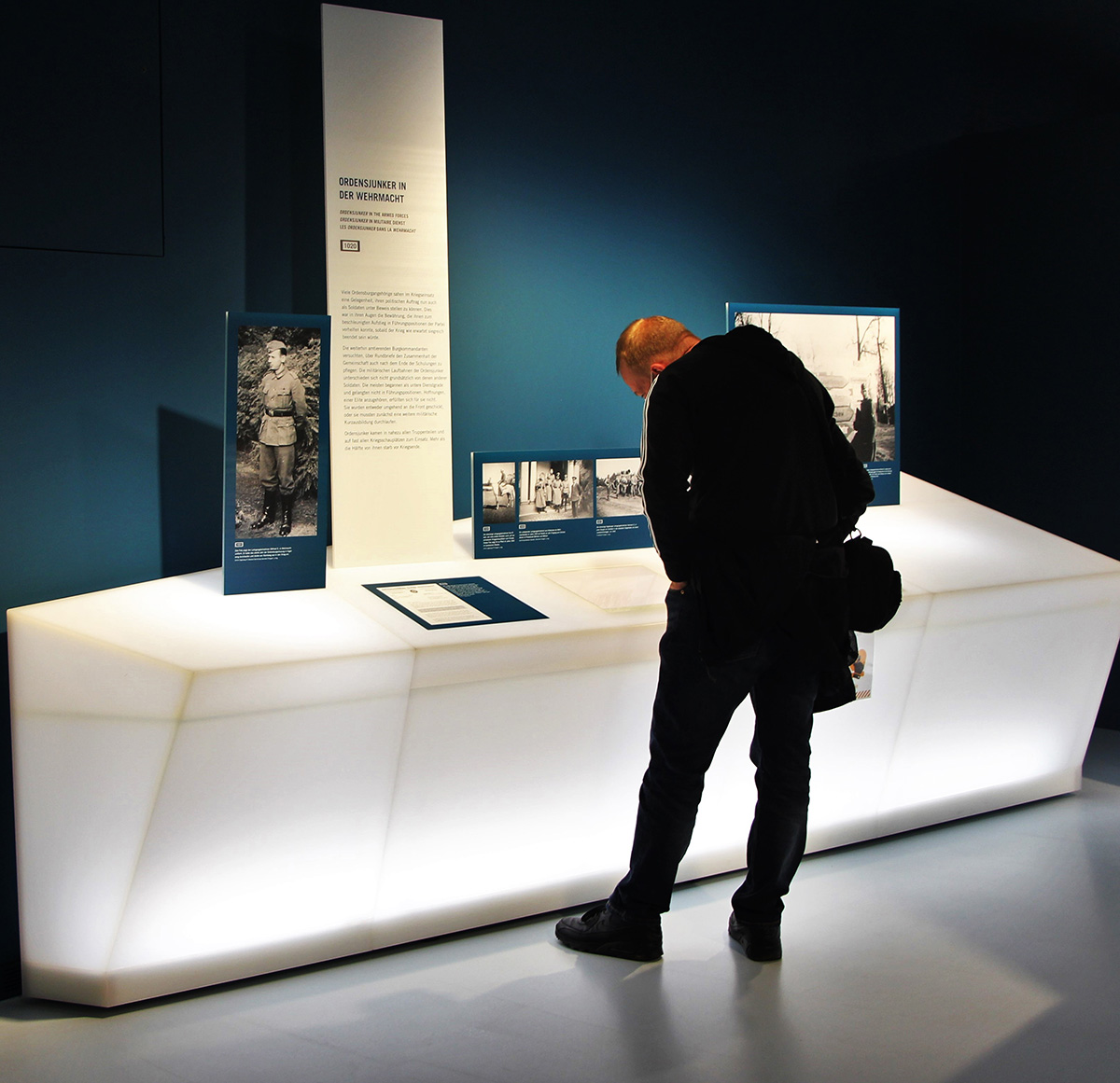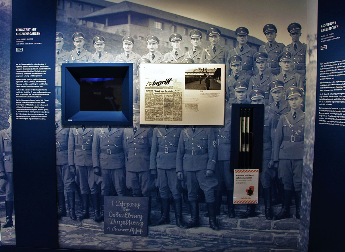 Die Dauerausstellung lenkt den Blick auf eine Gruppe von jungen Männern, die von der Parteiführung ausgewählt wurden, sich in den „Ordensburgen“ zur zukünftigen Führungselite der NS-Herrschaft ausbilden zu lassen. Am Beispiel von Vogelsang wird deutlich, wie sehr die Architektur eingesetzt wurde, um Macht und Herrschaft der Partei zu dokumentieren. Die ideologische Prägung erfolgte durch Seminare, aber auch durch die körperliche Formung mit militärischem Drill und verschiedenen Sportarten. Des Weiteren wurde durch das Fach „Rassenlehre“ das Bild von der Überlegenheit des „arischen“ Herrenmenschen verstärkt.