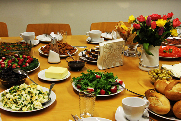 Treffen mit ehrenamtlichen Akteuren bzw. Akteurinnen zum Frühstück, mit Menschen aus der Nachbarschaft und Neuankömmlinge, mit Gesprächsaustausch, 1-mal im Monat