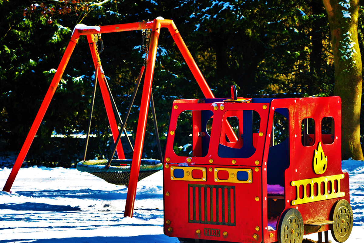 Spielgeräte wie z. B. ein Spielhaus mit Kletterturm, Drehscheibe, Schaukeln, Sandkasten, Rutsche stehen für Kinder bis 14 Jahre zur Verfügung. Sitzbänke für Eltern sind auch vorhanden.