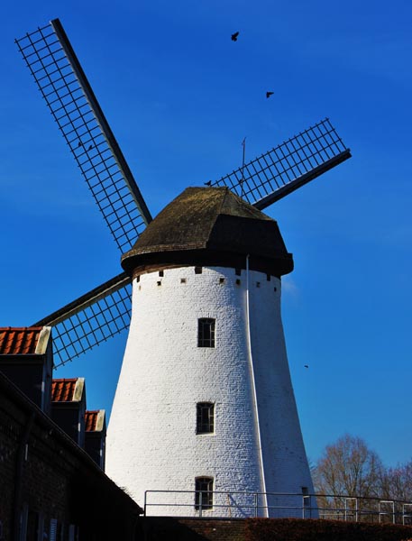 Bei der Mühle, die die größte im Krefelder Stadtgebiet ist, handelt es sich um eine Turmwindmühle, welche auf einem aus Backstein gemauerten Sockelring steht. Zur Mühle gehören ein eingeschossiges Wohnhaus und Wirtschaftsgebäude. Die Fassade der Mühle ist derb verputzt (geschlämmt) und weiß getüncht.