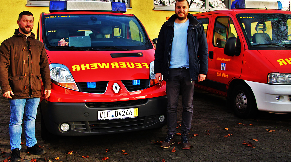 Sie fahren die ehemaligen Mannschaftstransportfahrzeuge der Löschzuge Neersen und Anrath der Freiwilligen Feuerwehr Willich nach Lettland.