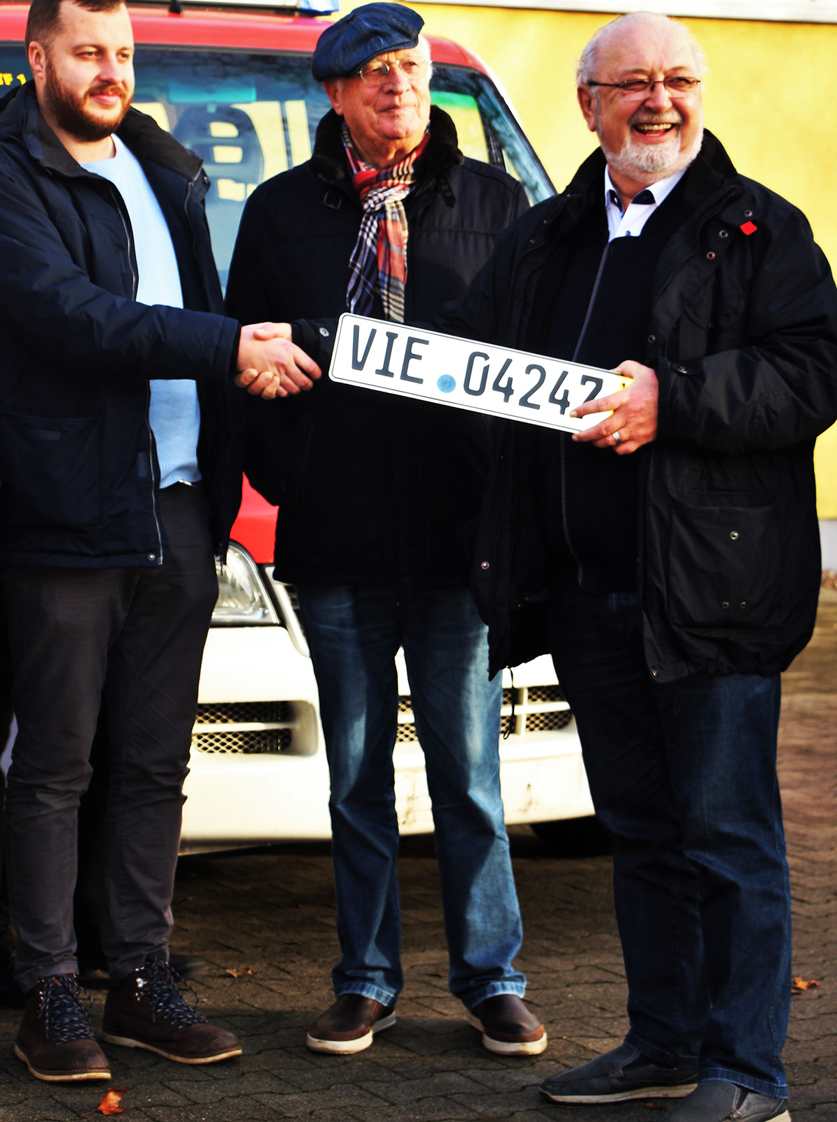 Die ausgemusterten Fahrzeuge sind ein Geschenk des Deutsch-Lettischen Freundeskreises, Kudl, Hauptstraße 81, Willich-Neersen, vertreten durch Hildegard Herber-Spahn, Vorstandsvorsitzende und Wolfgang (Geschäftsführer) und Agnes Brock.