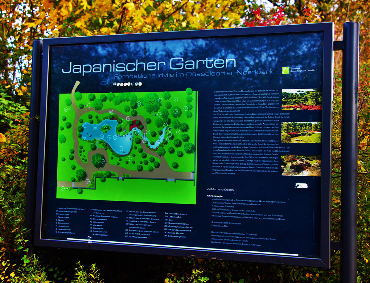 Der Garten wurde 1975 von der japanischen Gemeinde in Düsseldorf der Bevölkerung übergeben.
