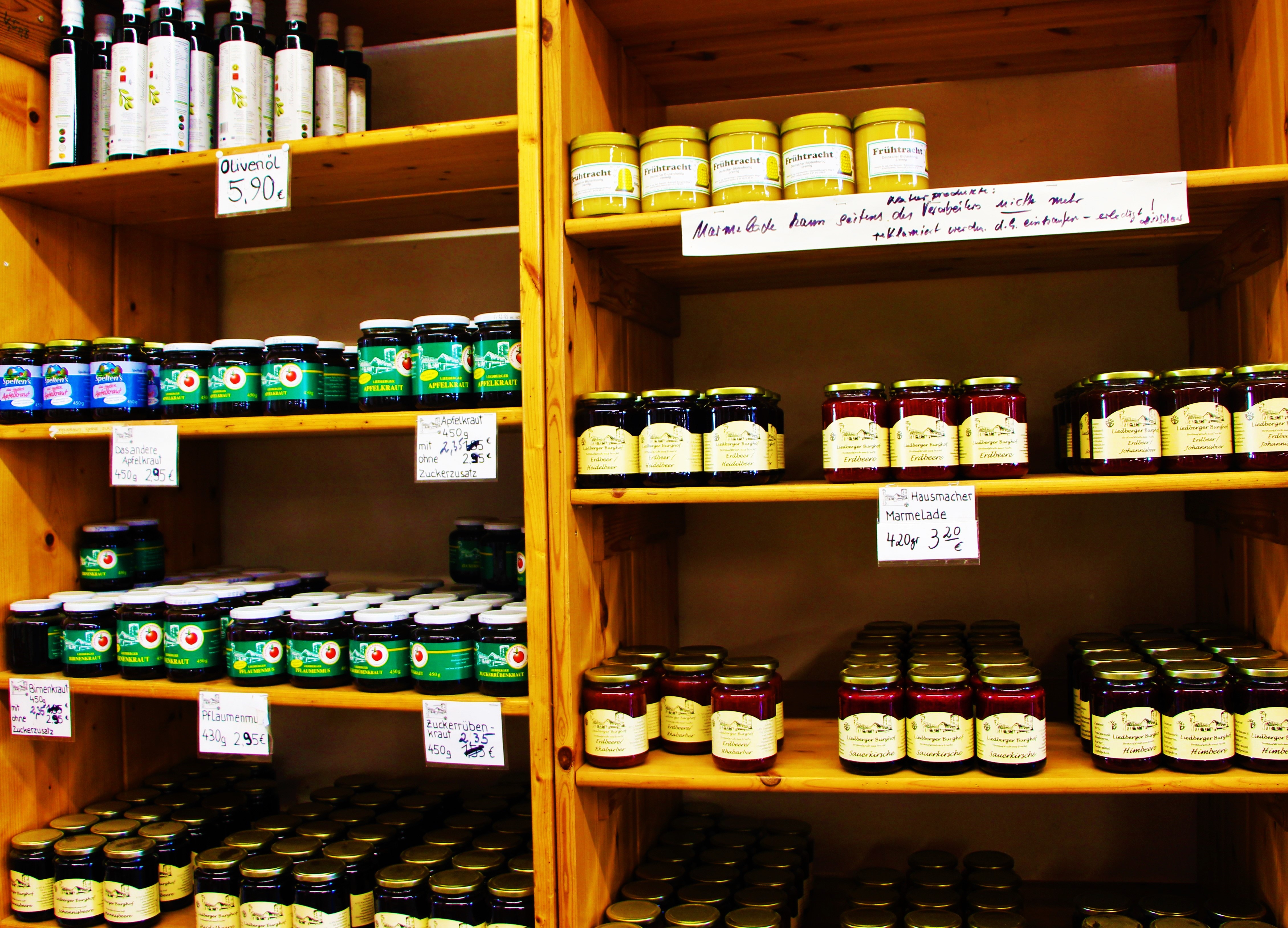 Bei den Hofläden bzw. bei den Verkaufsstellen, finden wir vieles, was wir zu Hause für unseren Speiseplan benötigen. Ob Back- und Teigwaren, Getreide, Brotaufstriche, Milchprodukte, Eier, Gemüse, Obst, Säfte, Essig, Gewürze, Öle, regionale Spezialitäten, Süßwaren, Weine und vieles mehr.