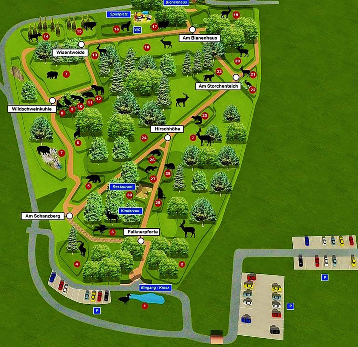 Auf dem rund 50 Hektar großen Waldgelände kann man viele europäische Wildtiere hautnah erleben.