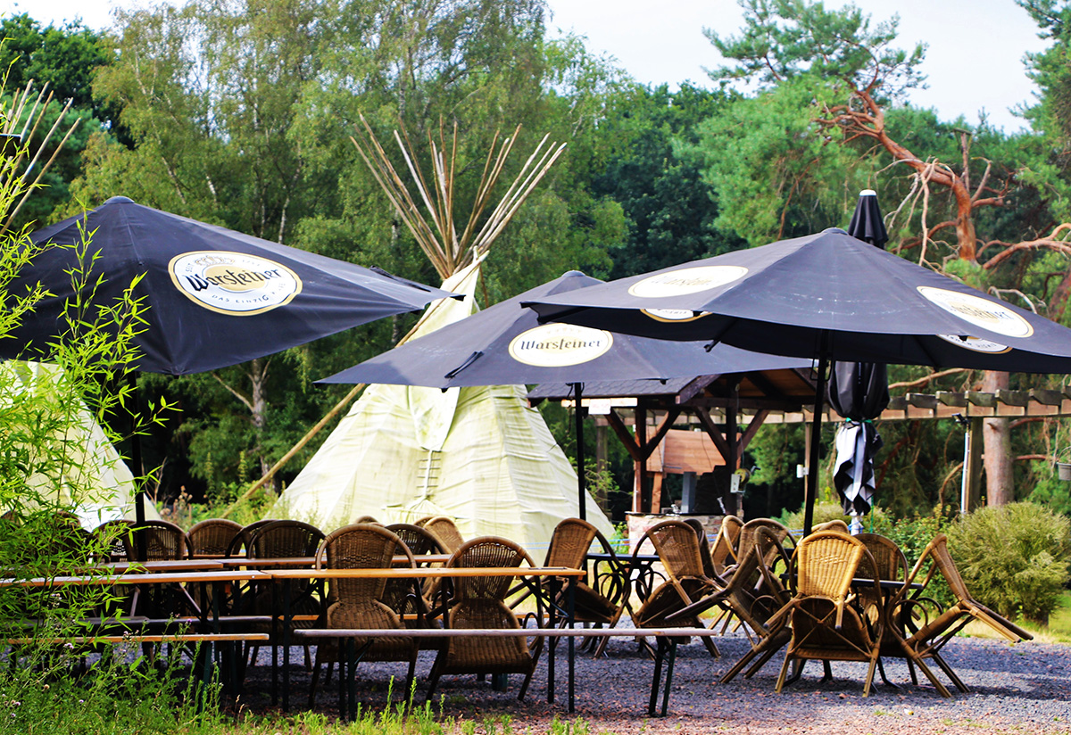 Inmitten des Wildparks befindet sich das Restaurant „Haus Wildblick“ mit schöner Terrasse und Blick auf den Park bzw. Tiere.