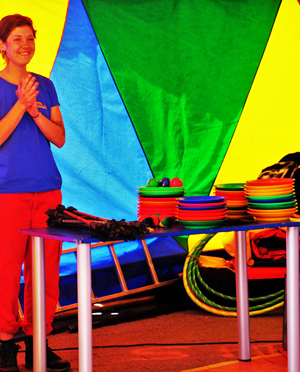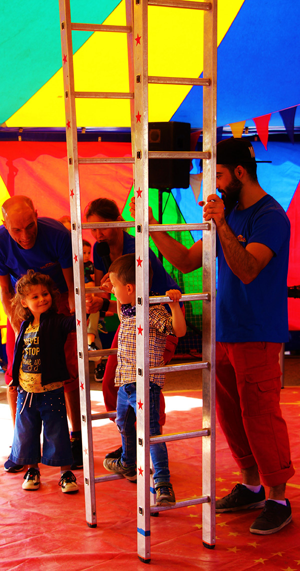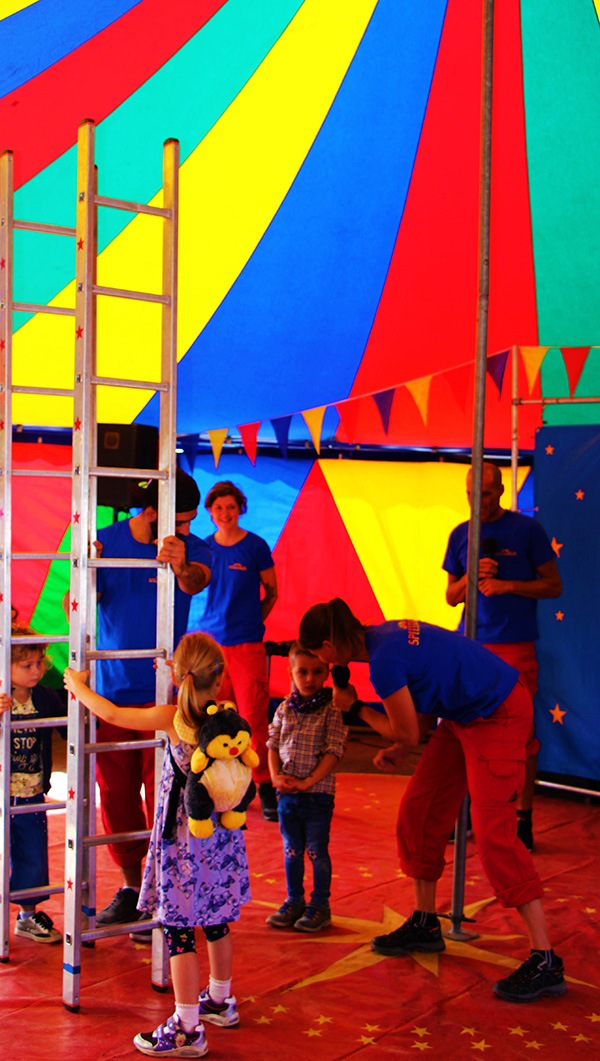 Besuch im Kinderzirkus an der Rheinuferpromenade, in Düsseldorf, freier Eintritt