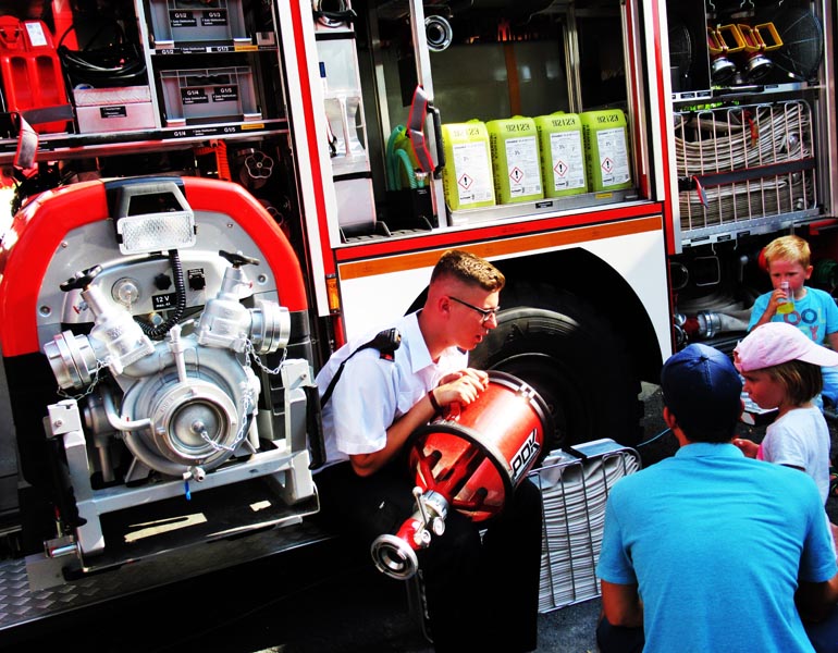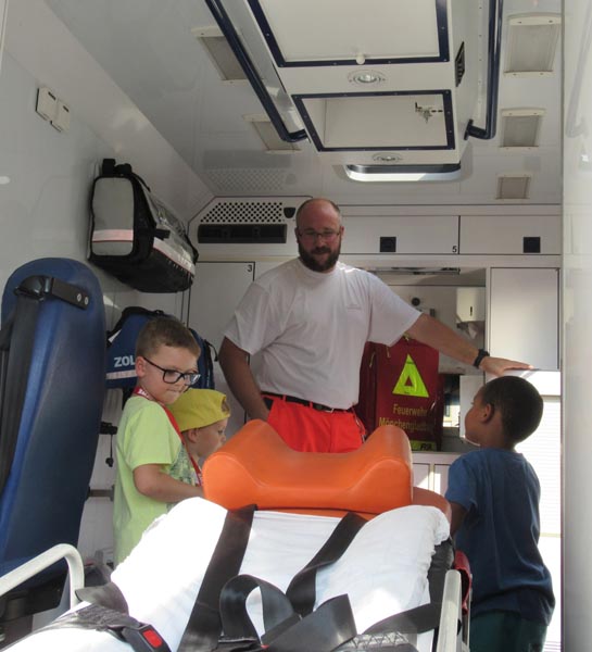 Besuch zum diesjährigen Feuerwehrfest in Giesenkirchen mit vielen Attraktionen, einer Tombola, Slusheis, Hüpfburg, Kinderschminken und Cocktailbar. Als Highlight war für die meisten Kinder und Jugendlichen die Besichtigung der Feuerwehrautos, Krankenwagen, Polizeiwagen und das Fahren mit einem Feuerwehrauto. Für die Erwachsenen waren die Highlights die Cocktailbar und das Abendprogramm mit der Band „Remember“.