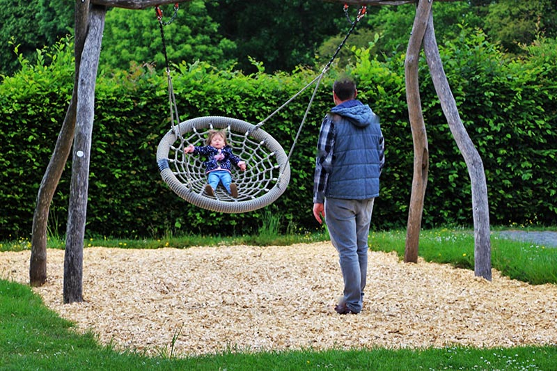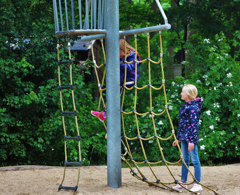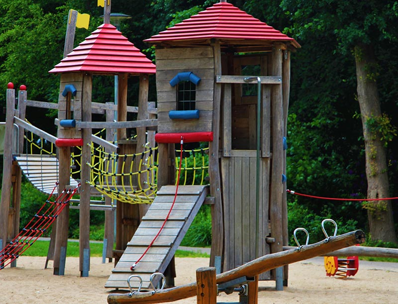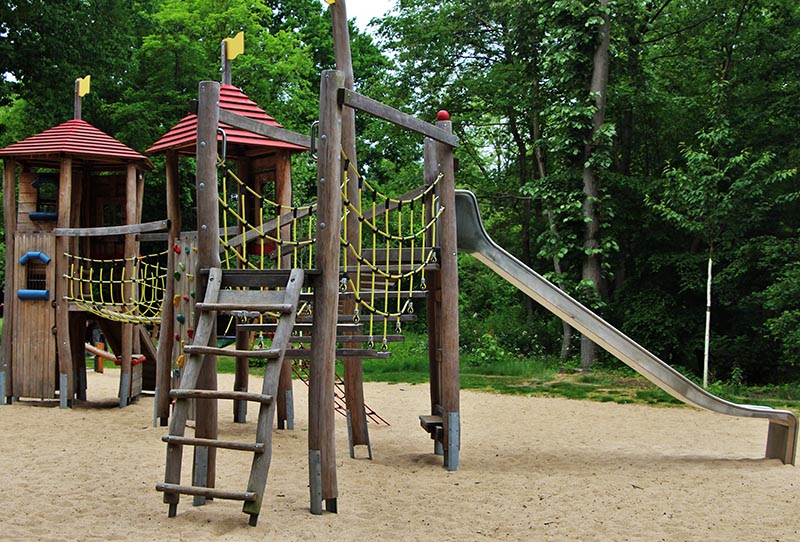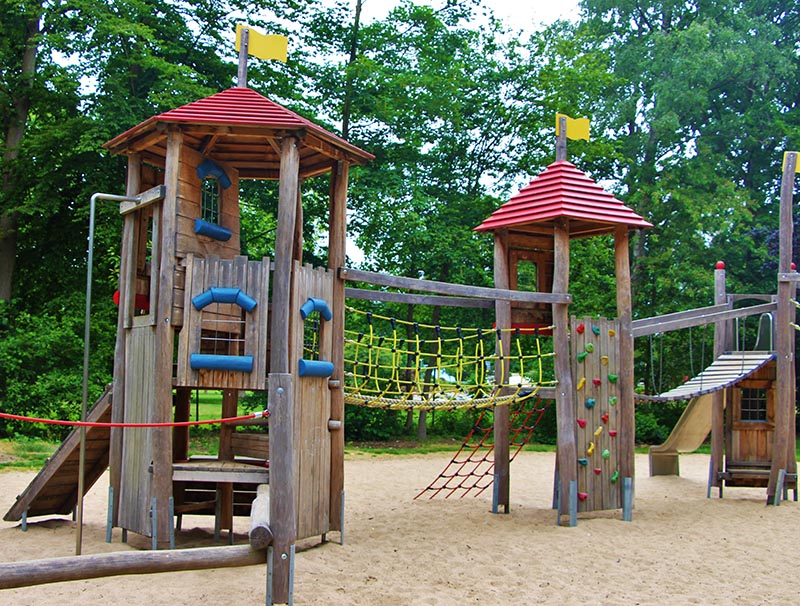 Weitläufiger Spielplatz mit vielen Möglichkeiten für Kleine und Große.