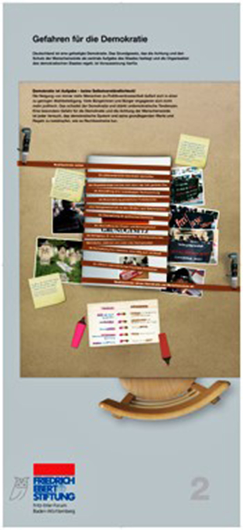 Die Friedrich-Ebert-Stiftung breitet nun auf ihrem Ausstellungstisch Informationsmaterialien zum Thema Rechtsextremismus aus, denn Informationen sind für ein Engagement gegen Rechtsextremismus genauso wichtig wie das Bewusstsein für das demokratische Fundament unserer Gesellschaft.