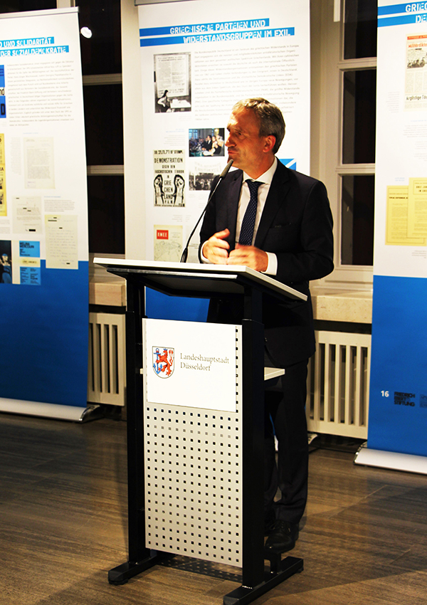 Einladung zur Eröffnung der Deutsch-Griechischen Ausstellung „Solidarität und Widerstand“ im Düsseldorfer Rathaus mit Thomas Geisel, Oberbürgermeister