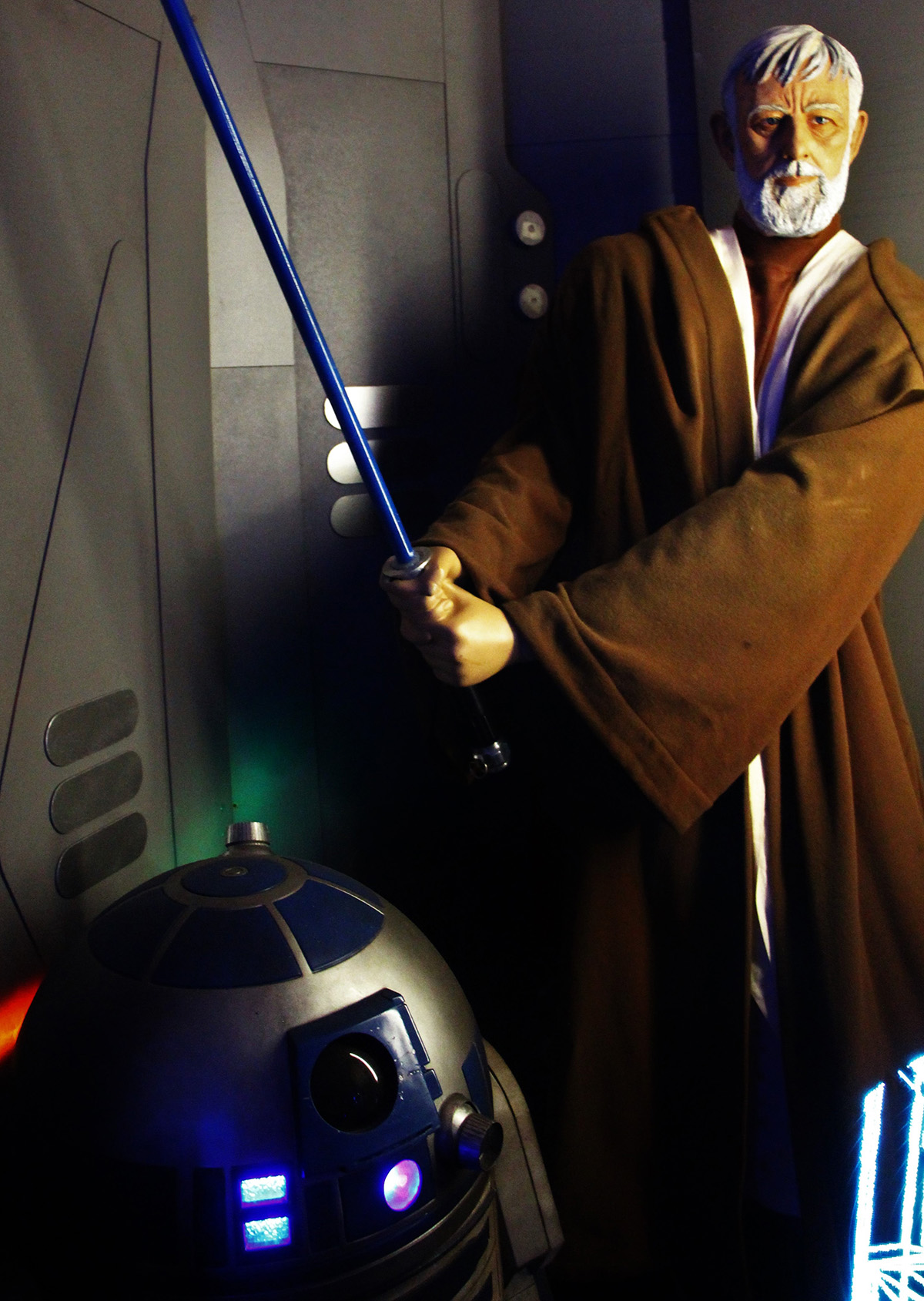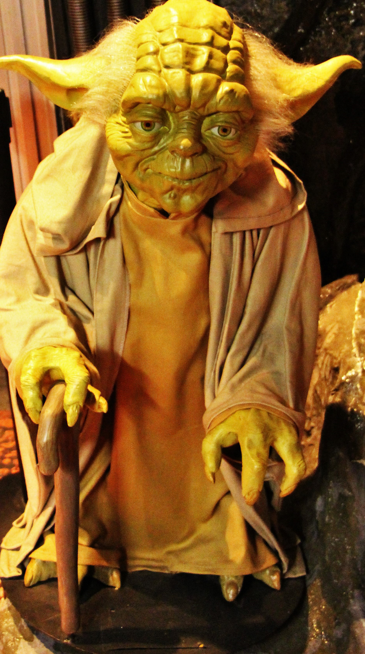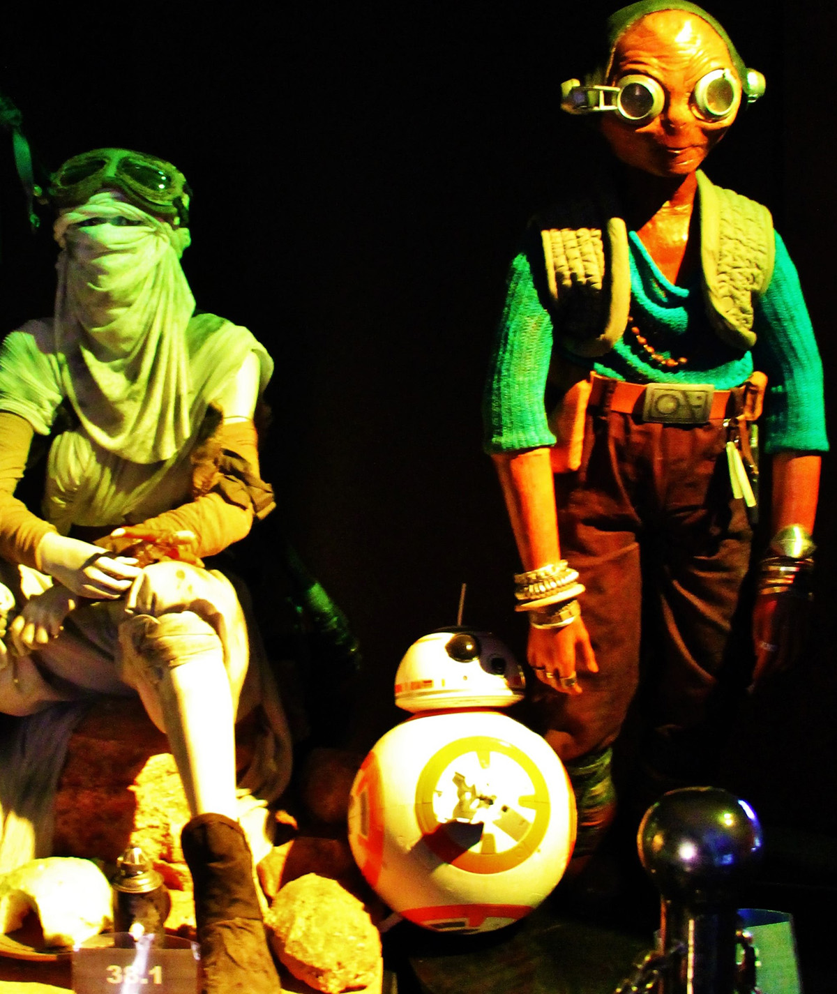 In der Ausstellung schauten wir uns lebensgroße Film.- und Sammler-Figuren, Original-Requisiten, seltene Exponate, Poster, Bekleidung bzw. Kostüme und Accessoires, Laserschwert- und Waffenrepliken aus den Star Wars-Filmen und vieles mehr, an.