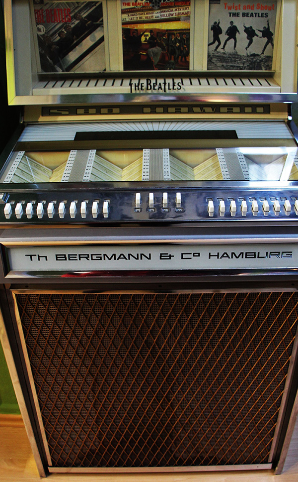 „The Green Walrus“ ist eine Begegnungsstätte und außerdem eine Galerie, in der Gabi und Jürgen einen Teil ihrer Sammlung für Beatles-Fans ausgestellt haben.