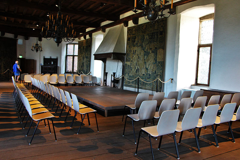 Im Jagdschloss des Museums Burg Linn verbinden sich Musik und Seide.