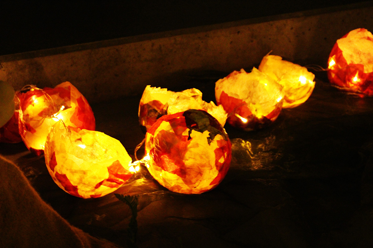 Die Laternen der Kinder bzw. Schüler* innen wurden mit Lämpchen an Lichterketten liebevoll eingebettet. Dadurch verbreitete sich ein geheimnisvoller Eindruck.