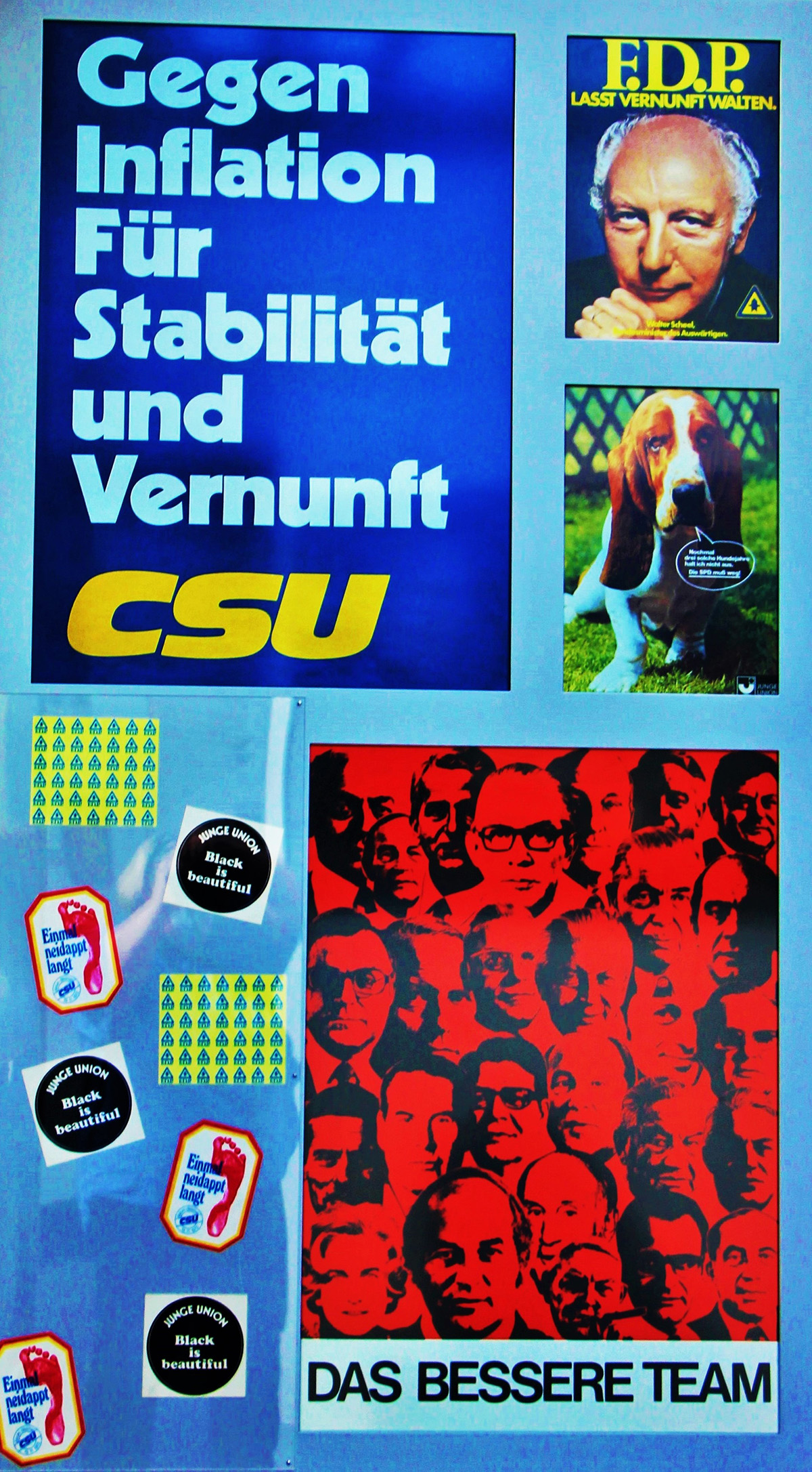 Vielfältige Objekte aus Alltag, Kultur, Wirtschaft und Weltgeschehen sind zu sehen.