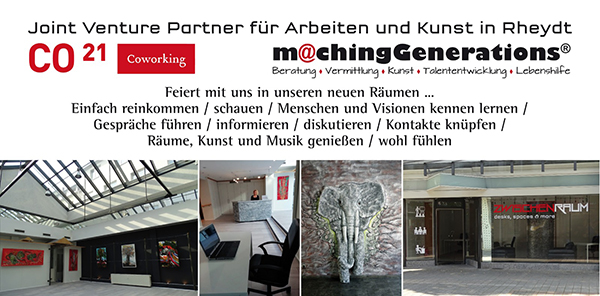 Herzlichen Dank für die Einladung zur ZwischenRaum-Eröffnung bei Uli und Christiane Wateler, matchingGerationens GmbH & Co. KG und Christoph Schlee, Co21 Coworking UG, https://www.zwischenraum-ry.de/