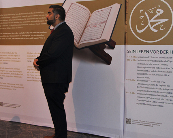 Informative Schautafeln und viele zusätzliche interessante Informationen von Muhammad Bilal Awais, Imam und Theologe und weitere Mitglieder der Ahmadiyya Muslim Jamaat Gemeinde.