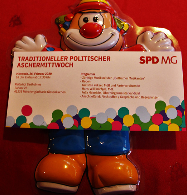 Vielen Dank für die Einladung zum „Traditionellen Politischen Aschermittwoch SPD“,