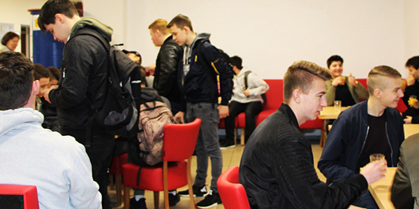 Treffen zum interreligiösen Dialogaustausch mit Pfarrer Ralf Laubert, Bezirksbeauftragter der Arbeitsgemeinschaft ev. Religionsunterricht und Schüler/-innen am Berufskolleg im ev. Kirchenkreis Gladbach-Neuss mit ehrenamtlichen Akteuren bzw. Akteurinnen im IMP im Brücken-Cafe, Mönchengladbach.