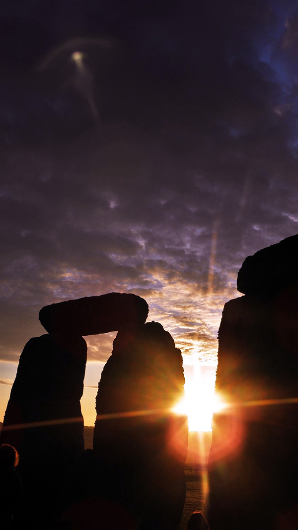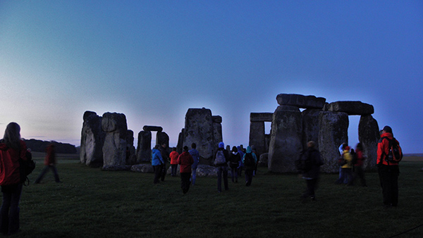 Besuch mit einer internationalen Reisegruppe nach Stonehenge, England zum Sonnenaufgang. Die Führung begann morgens um 05.00 Uhr im Innern des Kreises.
